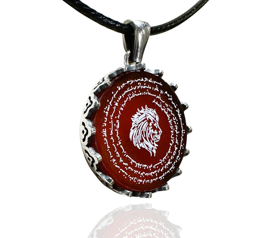 Korunma Dualı Aslan Burcu Kolyesi (925 Ayar Gümüş – Akik Taşı)