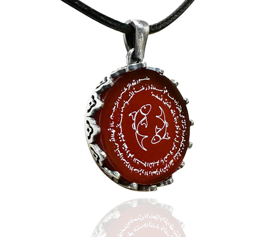 Korunma Dualı Balık Burcu Kolyesi (925 Ayar Gümüş – Akik Taşı)