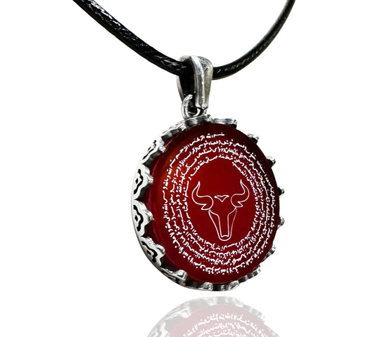 Korunma Dualı Boğa Burcu Kolyesi (925 Ayar Gümüş – Akik Taşı)