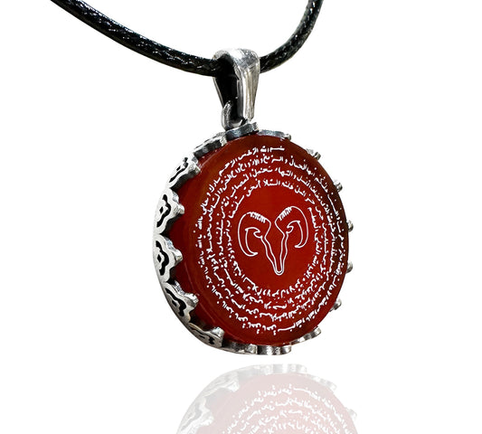 Korunma Dualı Koç Burcu Kolyesi (925 Ayar Gümüş – Akik Taşı)