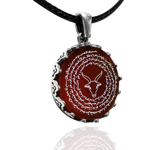Korunma Dualı Oğlak Burcu Kolyesi (925 Ayar Gümüş – Akik Taşı)
