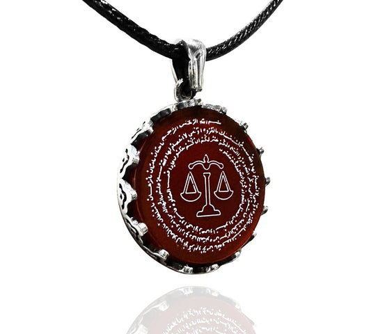 Korunma Dualı Terazi Burcu Kolyesi (925 Ayar Gümüş – Akik Taşı)