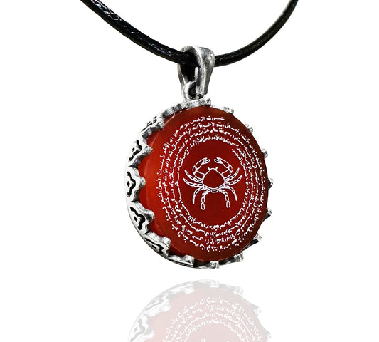 Korunma Dualı Yengeç Burcu Kolyesi (925 Ayar Gümüş – Akik Taşı)