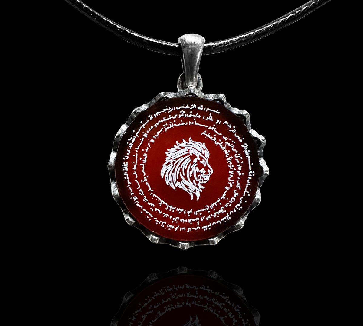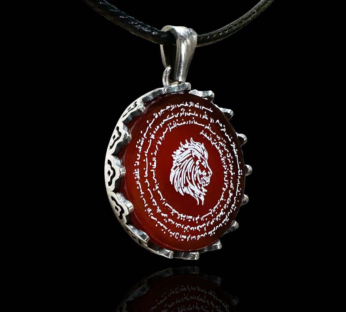 Korunma Dualı Aslan Burcu Kolyesi (925 Ayar Gümüş – Akik Taşı)
