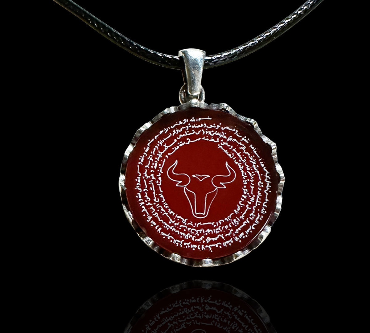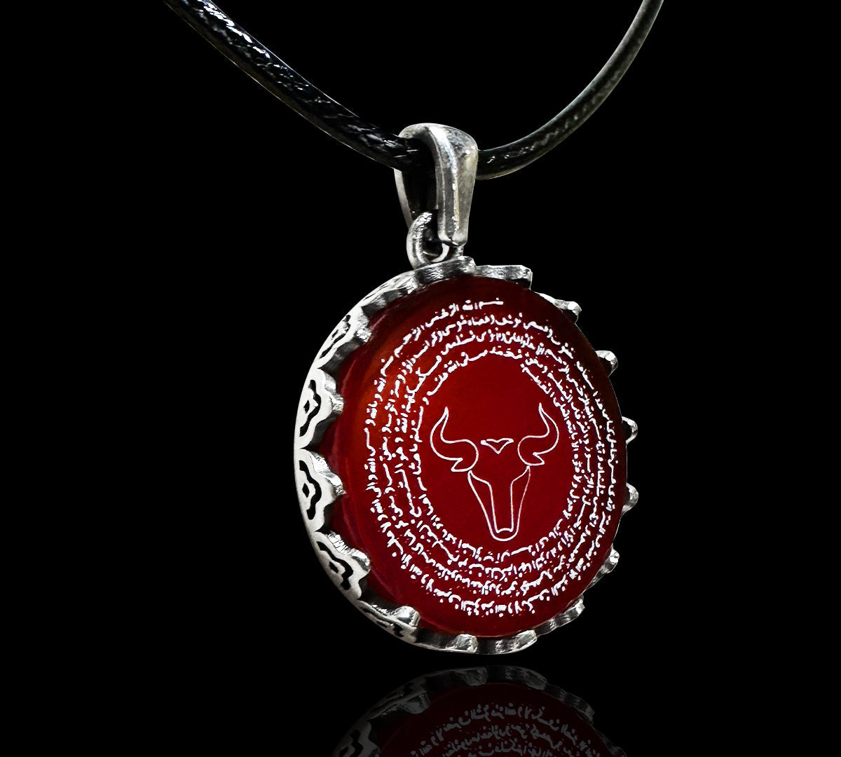Korunma Dualı Boğa Burcu Kolyesi (925 Ayar Gümüş – Akik Taşı)