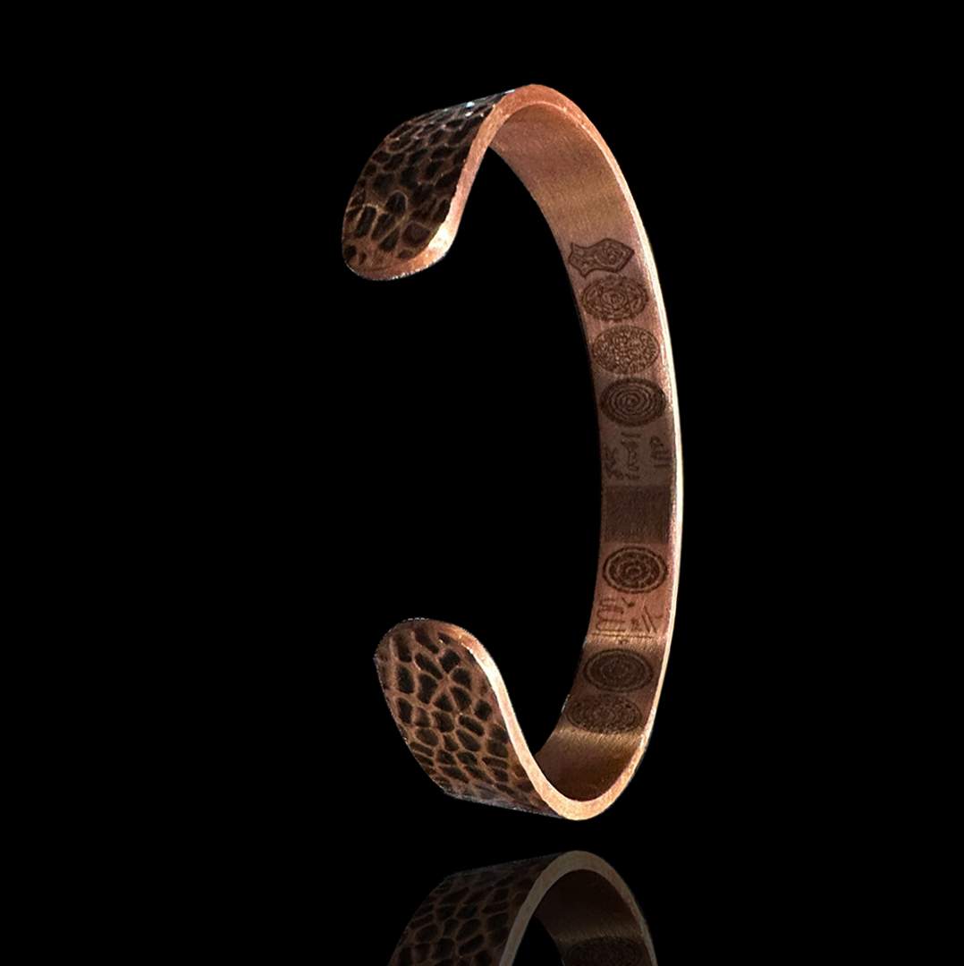 Dualı Bakır Bileklik - Urartu Modeli, hem zarif tasarımı hem de manevi anlamlarıyla size eşlik edecek özel bir aksesuardır. Bu bileklikte yer alan dualar ve mühürler, inanç ve geleneklerden ilham alarak tasarlanmıştır.