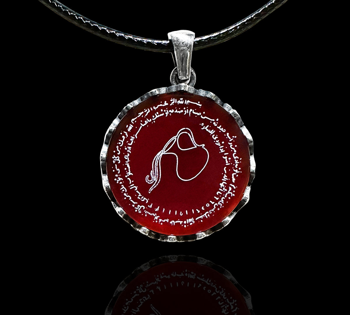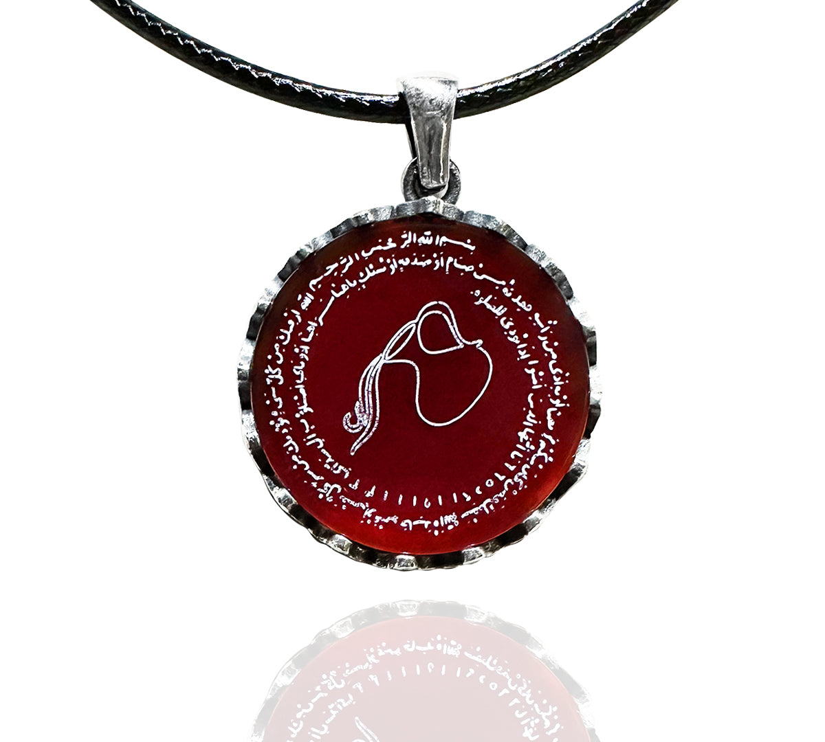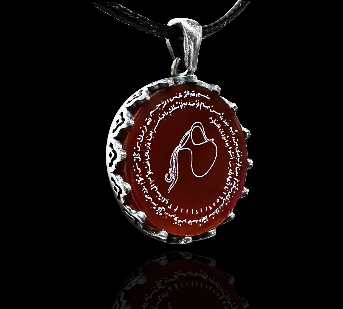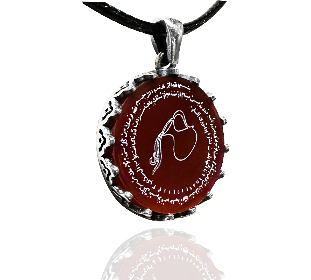 Kolye, 925 ayar saf gümüşten üretilmiş olup, ortasında doğal akik taşıyla zenginleştirilmiştir. Akik taşı, Peygamberimizin tavsiyesi olan bir taş olup huzur ve koruma sembolü olarak bilinir ve enerjisel denge arayışında olanlar için sıklıkla tercih edilir.