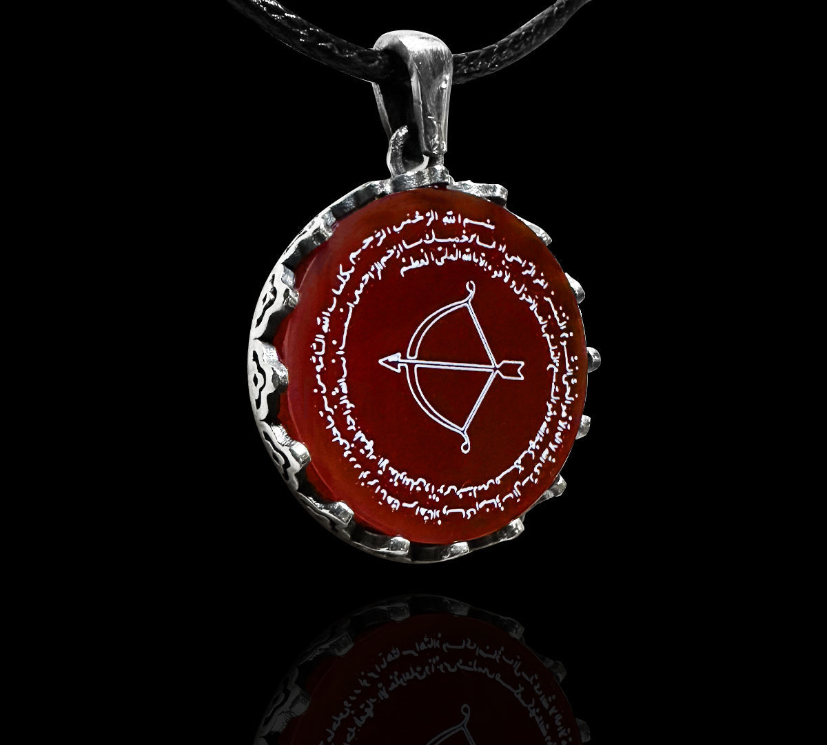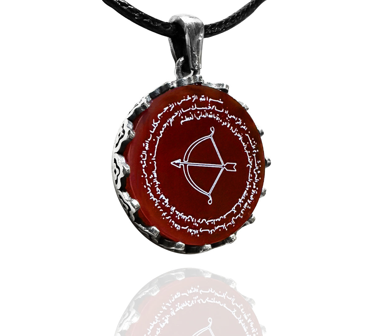 Korunma Dualı Yay Burcu Kolyesi (925 Ayar Gümüş – Akik Taşı)